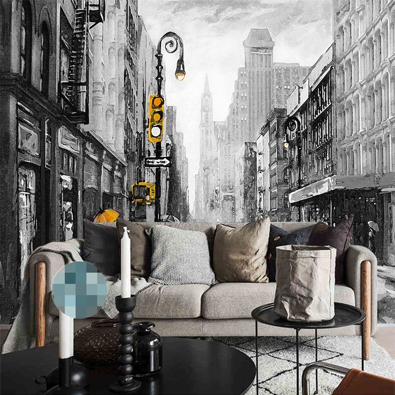 Customized 3d Oil Painting Wallpapers Modern Grey City Street Car