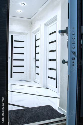 Door And Door Handle Blurry White Scandinavian View Into Modern