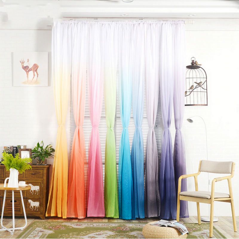 2020 Curtains Gradient Color Print Voile Gray Window Curtain