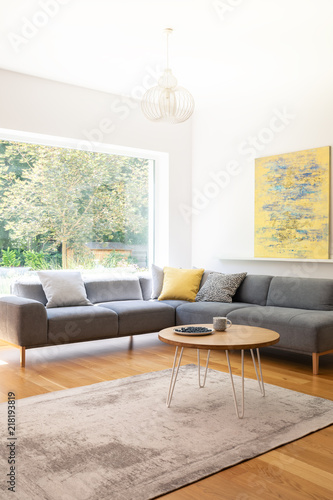 Elegant Lounge With Grey Comfortable Corner Sofa In A Modern Hou