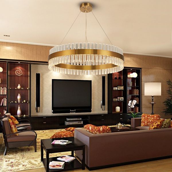 Living Room Modern Crystal Chandelier With Elegant Brown Wooden